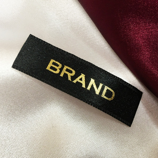 Pielāgotas etiķetes TL-M10 kas uzdrukāts uz satīna auduma, kas piemērots apģērbam, apģērba aksesuāriem un citiem tekstilizstrādājumiem.