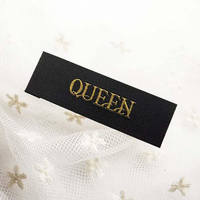 Pielāgota austa etiķete WL-M16 Digital izšūts uz auduma, kas piemērots drēbēm, apģērba aksesuāriem un citiem tekstilizstrādājumiem.