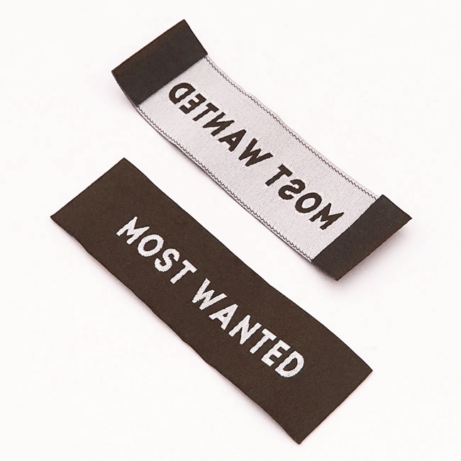 Austa etiķete, kas piemērota dažādiem apģērbiem vai citiem tekstilizstrādājumiem, izgatavoti no damaskas, ar salocītām malām. Šāda veida austa etiķete ir izgatavota no augstas kvalitātes materiāliem, izmantojot vismodernākās tehnoloģijas no digitālās izšūšanas jomas rūpnieciskā līmenī.