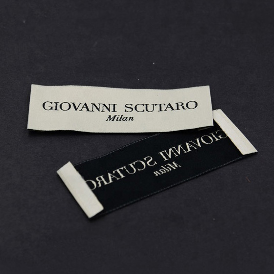 Digitāla izšūta etiķete uz auduma ar salocītām malām Pure Style modelis, kas paredzēts austam uz apģērba gabala, pielāgots ar nosaukumu un logotipu. Šāda veida austa etiķete ir izgatavota no augstas kvalitātes materiāliem, izmantojot vismodernākās tehnoloģijas no digitālās izšūšanas jomas rūpnieciskā līmenī.