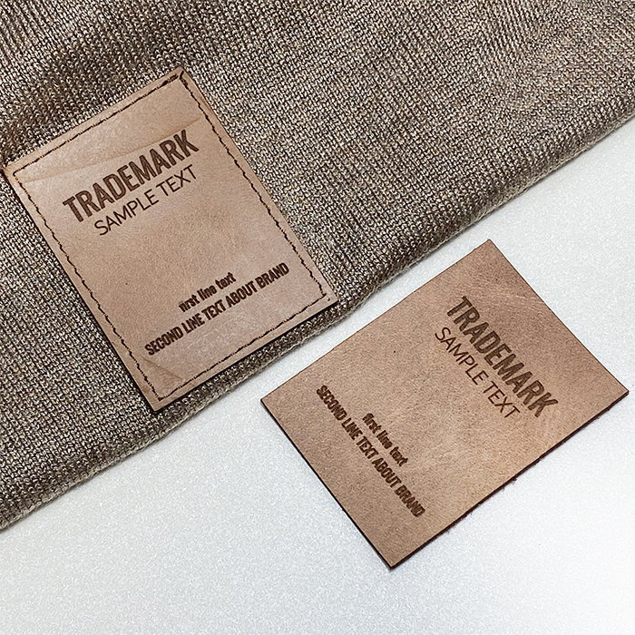 Pielāgota īstas ādas etiķete, iegravēta ar lāzeru un piegriezta atbilstoši norādītajiem izmēriem.