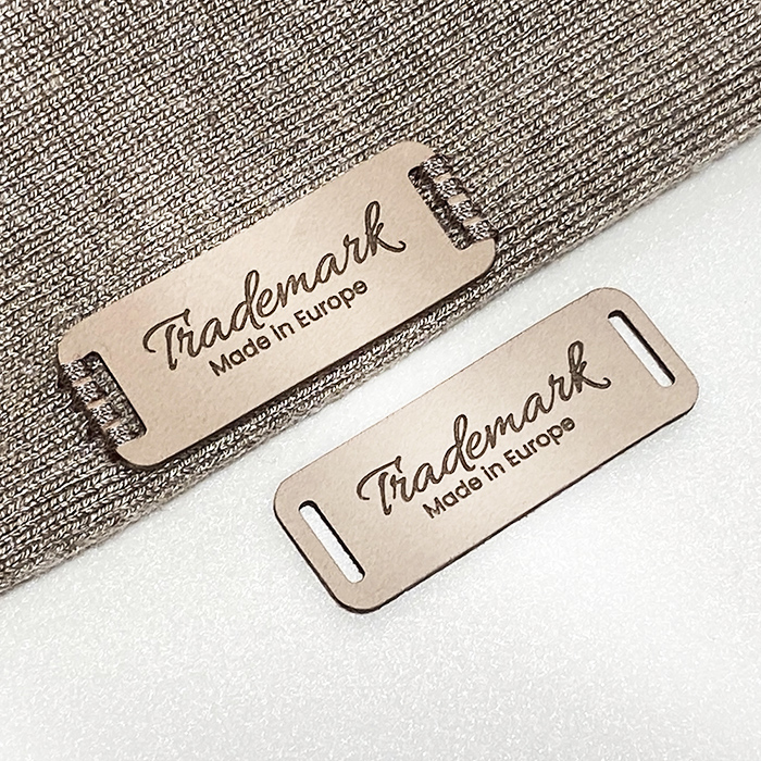 Pielāgota īstas ādas etiķete, iegravēta ar lāzeru un piegriezta atbilstoši norādītajiem izmēriem.