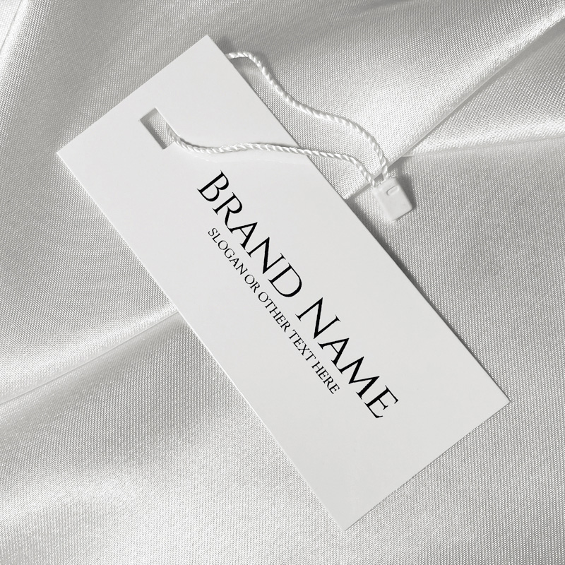 Kartona etiķete ar plastmasas blīvējuma modeli HT-M101, kas laminēta ar spīdīgu foliju un pielāgota ar melnu tekstu, piemērota apģērbu izstrādājumiem, piemēram, drēbēm, aksesuāriem un citiem priekšmetiem. Šāda veida piekaramais tags ir izgatavots no augstas kvalitātes materiāliem, izmantojot vismodernākās tehnoloģijas digitālās drukas un apdares jomā.