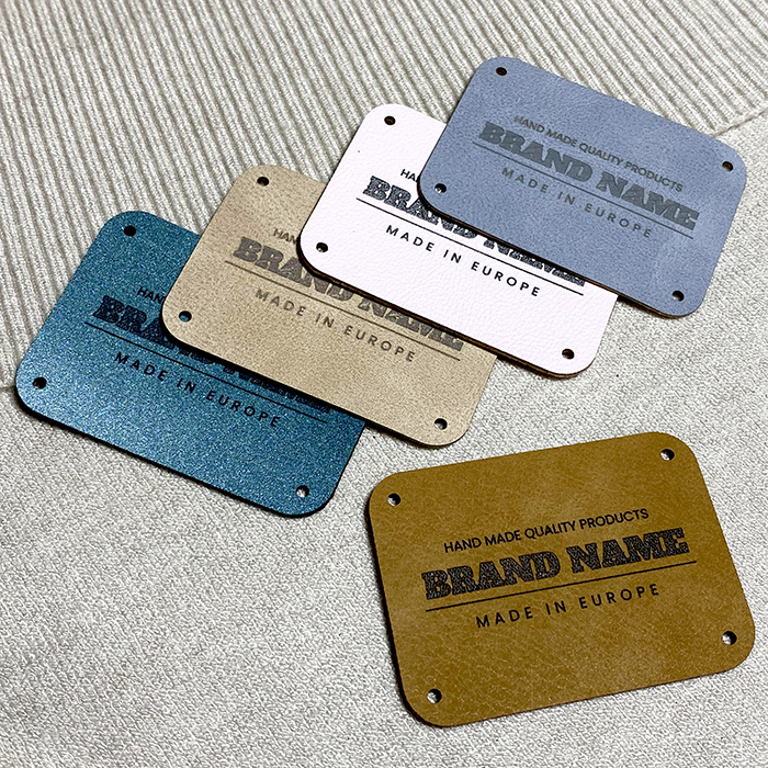 Ādas etiķešu imitācijas, kas personalizētas ar ražotāja logotipu vai zīmola nosaukumu Modelis EP-M123, apģērbiem un dažādiem tekstilizstrādājumiem. Šis mākslīgās ādas etiķetes modelis ir izgatavots no poliuretāna, kas pazīstams arī kā sintētiskā āda, ar augstu kvalitāti, izmantojot augstas veiktspējas metodes un aprīkojumu. Etiķetes tiek grieztas ar lāzeru atbilstoši šajā lapā norādītajiem izmēriem, un pielāgošana tiek veikta ar lāzergravēšanu ar precizitāti līdz 0,2 mm.