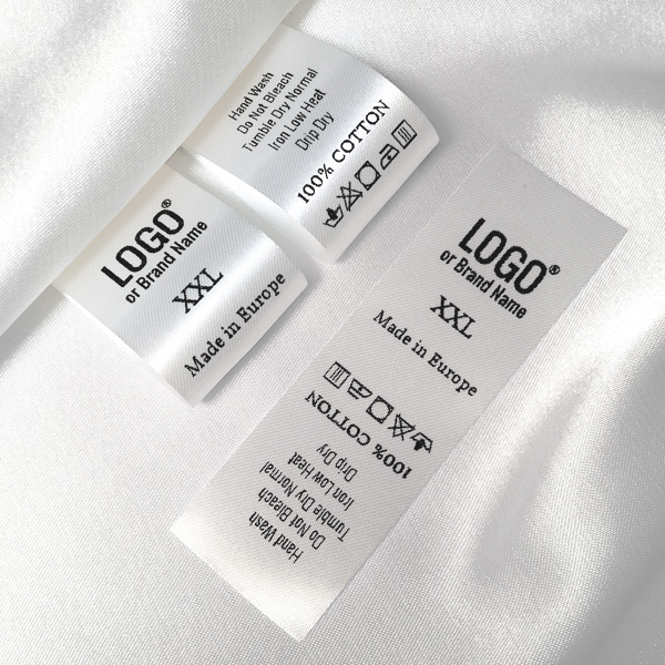 Apģērba auduma etiķete, kas uzdrukāta uz smalka satīna ar izmēru indikatoru, kā arī veļas simboli un mazgāšanas instrukcijas, piemērota dažādiem apģērbiem un tekstilizstrādājumiem. Šāda veida tekstila etiķete tiek izgatavota, izmantojot vismodernākās tehnoloģijas digitālās drukas jomā uz tekstila balsta. Etiķetes tiek drukātas uz īpaša satīna ar termiskās pārneses metodi, ar iespaidīgu drukas kvalitāti un augstu mazgāšanas pretestību.