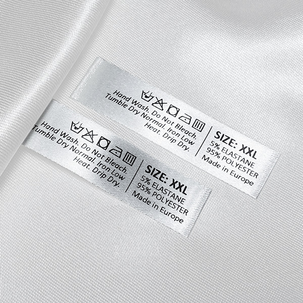 Pielāgota satīna etiķete apģērbu marķēšanai ar kopšanas un apkopes informāciju, ieskaitot mazgāšanas simbolus, sastāvu un izmērus. Šāda veida tekstila etiķete tiek izgatavota, izmantojot vismodernākās tehnoloģijas digitālās drukas jomā uz tekstila balsta. Etiķetes tiek drukātas uz īpaša satīna ar termiskās pārneses metodi, ar iespaidīgu drukas kvalitāti un augstu mazgāšanas pretestību.