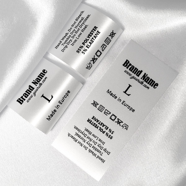 Satīna veļas kopšanas etiķete, kas satur informāciju par izmēriem, tekstus, veļas simbolus un mazgāšanas instrukcijas, kā arī zīmola nosaukums, kas piemērots drēbēm. Šāda veida tekstila etiķete tiek izgatavota, izmantojot vismodernākās tehnoloģijas digitālās drukas jomā uz tekstila balsta. Etiķetes tiek drukātas uz īpaša satīna ar termiskās pārneses metodi, ar iespaidīgu drukas kvalitāti un augstu mazgāšanas pretestību.